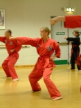 Ladies train in their own space and in pairs where appropriate, with and without hand held punch and kick pads, paddles, shields and free standing wave master heavy bags.